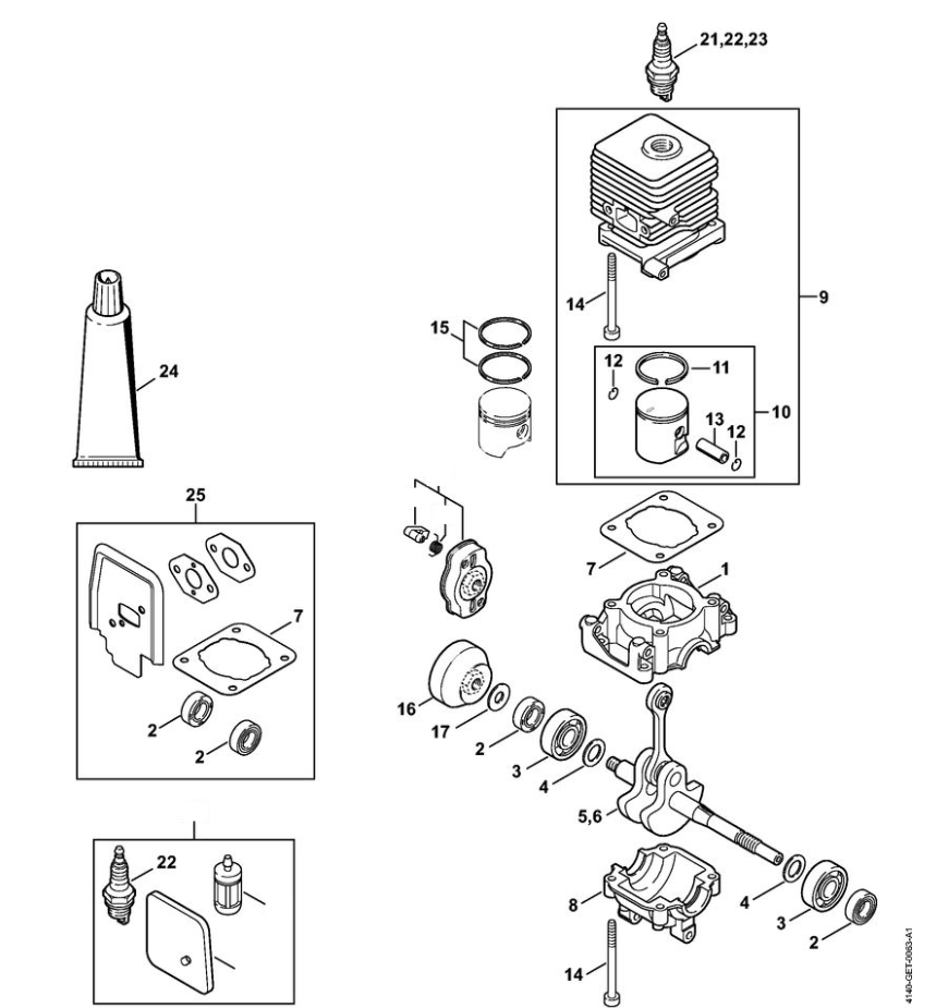 1 | Картер - Цилиндр - Поршень | FS 55 | Триммер STIHL | Запчасти по России | Сервисное обслуживание