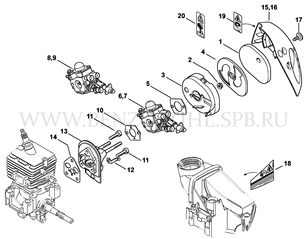 Воздушный фильтр - Промежуточный фланец - Карбюратор FS 70 C-E