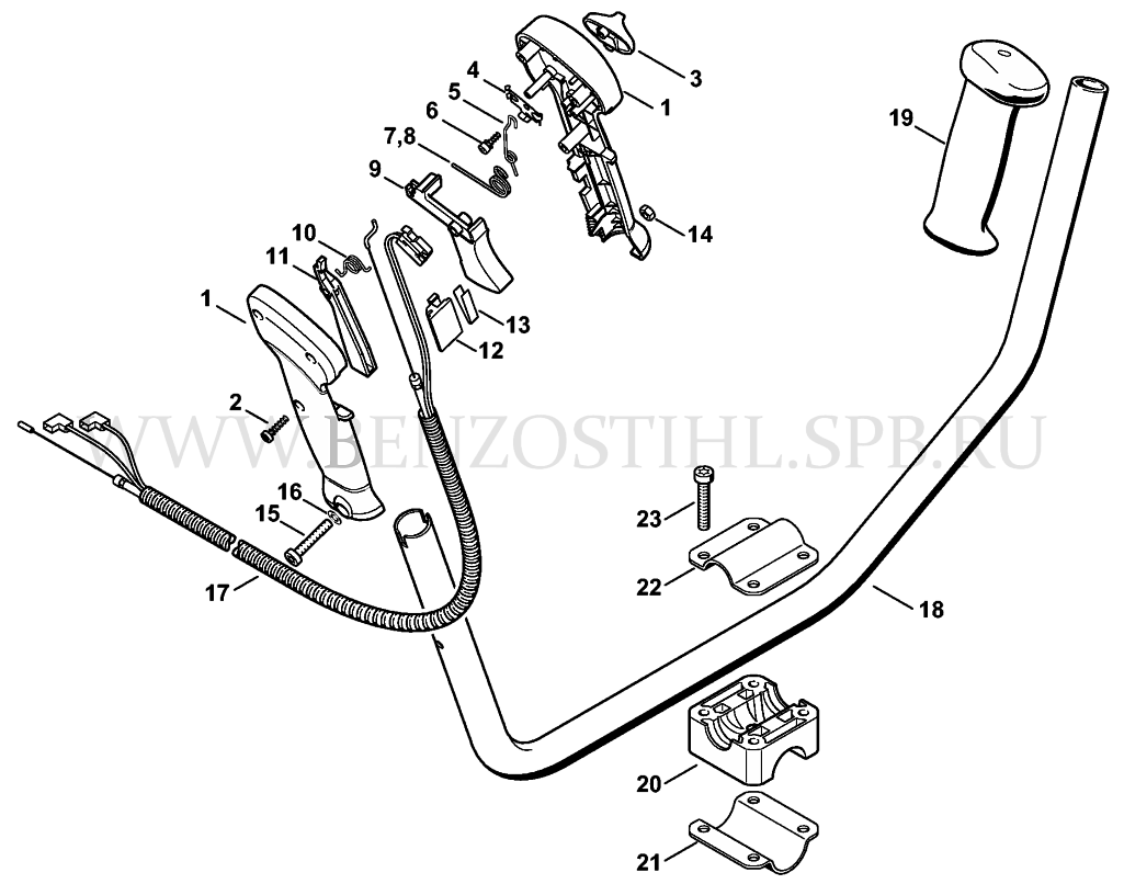 Рукоятка управления в сборе (FS 90, FS 90 R) (FS 100, FS 100 R, FS 100 RXZ) (FS 120, FS 120 R, FS 200, FS 200 R, FS 250, FS 250 R) (FS 130, FS 130 R) (FS 300, FS 350, FS 380) (FS 310) (FS 400, FS 450, FS 480) (FS 500, FS 550, FS 550 L) (KM 85, KM 85 R) (K
